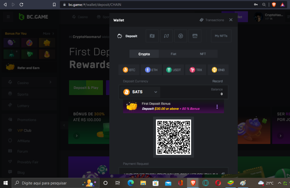 Website URL ( https://bc.game/pt/#/wallet/deposit/CHAIN)