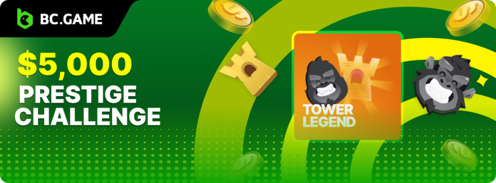 $5k Prestige Tower Legend Challenge #112 DURATION: 30th JAN - 6th FEB 14:30 UTC Attention VIPs! It's time to gear up and sprint to the pinnacle of each tower to claim your piece of this week's exhilarating prize pool! Join the rush from January 30 to February 6, ending at 14:30 UTC, and vie for a slice of the $5,000 prize bounty. Don't miss out; familiarize yourself with all the rules to fully engage in this electrifying challenge. Get ready to show your skills, and may luck be in your favor! Let's go, champions! WHAT IS THE CHALLENGE? Get to the top of the tower on any difficulty level at In-House Tower Legend. The player who gets to the top on the most levels will be the winner. If there's a tie, the player with the higher average bet amount (in USD) shall be the winner. If there is a tie in the amount and payout, the one who posted or edited his post first will be considered in the ranking. HOW TO ENTER To enter, copy the link of the bet you'd like to submit. Once you've copied it, paste it as a reply to this thread like so: Link: https://bc.game/#/sd/11RL29Q587Z1GZ In the same post, upload a screenshot of your win by clicking the game ID WITH VIEW IN USD mode ENABLED (accessible at the bottom of dropdown menu for your wallet up top. This way, we can ensure that your bet indeed met the minimum requirement at the time of placing it: LINK: https://bc.game/#/sd/11RL29Q587Z1GZ MINIMUM LEVEL Minimum VIP 8 with phone verified will be eligible! MINIMUM REQUIREMENTS Get to the top of 1 tower on any difficulty level. MINIMUM BET AMOUNT Min bet Easy - $ 1 USD equivalent Min bet Medium - $ 0.50 USD equivalent Min bet Hard - $ 0.20 USD equivalent Min bet Extreme - $ 0.10 USD equivalent Min bet Nightmare - $ 0.05 USD equivalent ELIGIBLE COINS All cryptocurrencies are eligible (excepting JB) AVAILABLE PRIZES GENERAL TERMS Please combine all of your hits into a single post. Edit your existing post for additional hits; don't create a new post. Each eligible entry must have the Bet Slip URL; failure to include it will disqualify participation in the event. The Bet Slip image is not mandatory. Bets must be posted within 24 hours of placing the bet in order to keep things fair for everyone. Bets must be made during the specified time window stated above. This thread will lock automatically when the time period is over. One (1) entry per household. Anyone found attempting to win multiple prizes will be disqualified from this challenge as well as all future challenges. Failure to follow the instructions will result in your submission being null and void. By entering this challenge, you acknowledge that BC.Game has the final say on results and placement. Payouts will be distributed after the event is finished. Please note that it could take anywhere between 3 to 7 days after the completion of the event.