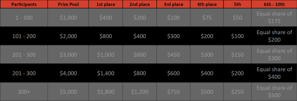 $5k Prestige DOUBLE Challenge #103 DURATION: 25th AUG - 1st SEP 12:30 pm UTC Greetings VIPs! We're ushering in another week of exclusive festivities at BC.GAME, meticulously curated for esteemed players like you. This week's highlight is a riveting tournament centered around our latest in-house sensation, DOUBLE, emphasizing consecutive bets. The mechanics are clear-cut, and the rewards are nothing short of spectacular. Dive into the event details and peruse the terms and conditions outlined below: What's the Challenge? Participants must win as many consecutive bets as possible by betting on either one of RED/BLACK on in-house DOUBLE game. Consecutive bets must be of the same color to validate the entry. Rank will be determined by the largest amount of consecutive bets, the longest sequence will be in 1st place and successively. In the event of a tie, the advantage will be given to the highest average bet in dollars. In the event of a tie again, the first bet placed will have the advantage. How to Enter To enter, copy the link of the bet you'd like to submit. Once you've copied it, paste it as a reply to this thread like so: Link: https://bc.game/#/sd/11GPPRIL9ZI97R In the same post, upload a screenshot of your win by clicking the game ID WITH VIEW IN USD mode ENABLED (accessible at the bottom of dropdown menu for your wallet up top. This way, we can ensure that your bet indeed met the minimum requirement at the time of placing it: Link: https://bc.game/#/sd/11GPPRIL9ZI97R Minimum VIP Tier Minimum VIP 4 with phone verified will be eligible! Minimum Bets Win at least 5 consecutive bets on same colour to qualify. Minimum Bet Size $0.20 USD equivalent Eligible Coins All cryptocurrencies are eligible (excepting JB and BCL) Available Prizes GENERAL Rules Please combine all of your hits together in a SINGLE post. Edit your existing post for additional hits, don't create a new post. Each eligible entry must have the Bet Slip URL, failure to include it will disqualify participation in the event. Bet Slip image is not mandatory. Changing seed in between bets is not allowed. This will lead to disqualify from event. Bets must be posted within 24 hours of placing bet in order to keep things fair for everyone. Bets must be made during the specified time window stated above. This thread will lock automatically when the time period is over. One (1) entry per household. Anyone found attempting to win multiple prizes will be disqualified from this challenge as well as all future challenges. Failure to follow instructions will result in your submission being null and void. By entering this challenge, you acknowledge that BC.Game has the final decision on results and placement. Payouts will be distributed after the event is finished. Please note that it could take anywhere from 48 hours to 7 days after the completion of the event.